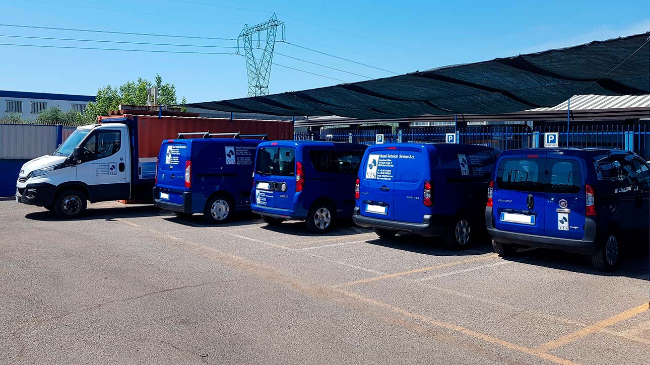 Un efficiente e dotato parco automezzi attrezzati come officine mobili permette inoltre una capacità di intervento rapido su tutti i porti o siti industriali dei nostri clienti in Italia.